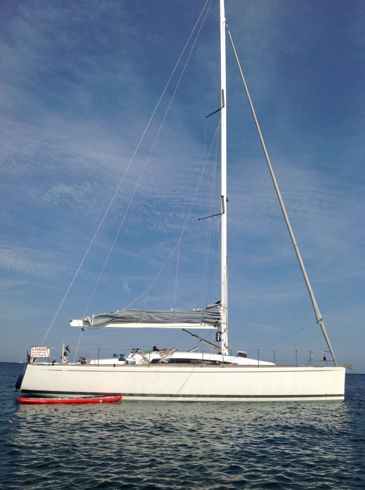 Il est en excellent état; Voiles 2012 carbone/kevlar/taffetas en parfait état, électronique complète avec repetiteurs de pied de mat, 2 salles d’eau, moteur 608 h.